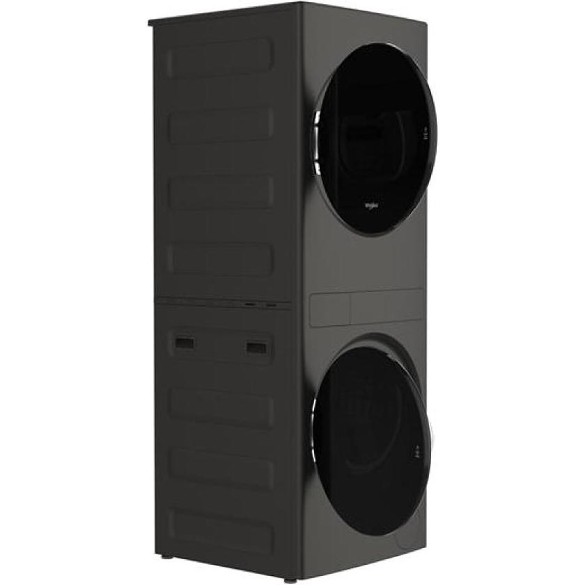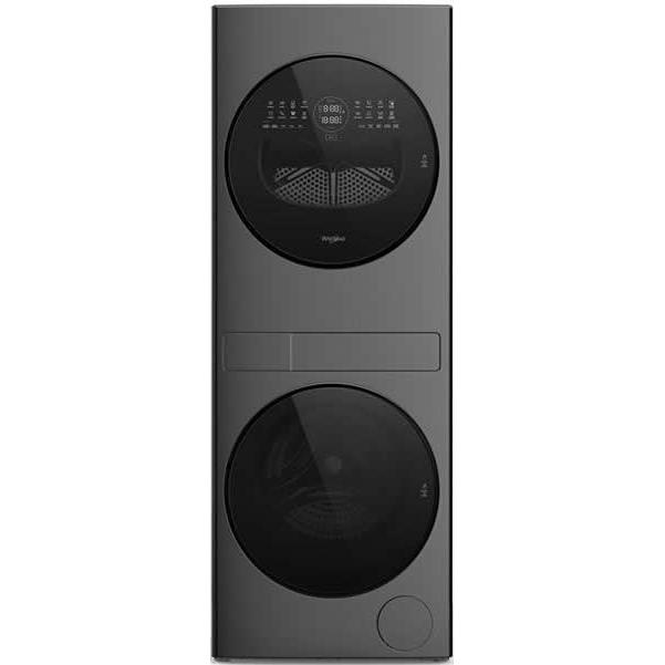 Whirlpool® 24-in Compact Front Load Ventless Heat Pump Laundry Tower with a Washer and an Electric 4.3-cu ft Dryer with Load & Go™ Bulk Dispenser. Conveniently handle your laundry needs in less space and with a modern aesthetic using this compact front-load laundry tower. Sleek and accessible touchscreen controls, combined with the largest capacity in its class, help make laundry easier.small dent on left corner