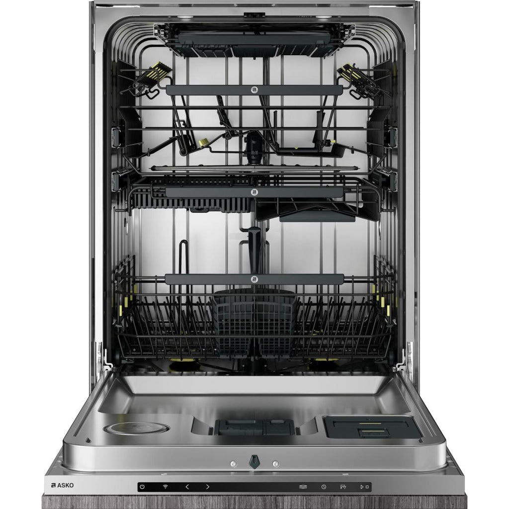 ASKO's XXL dishwashers have a loading height of 22-3/4”. Combined with the smart four-level rack system the load is 40% more, with countless possibilities to make it all fit in.