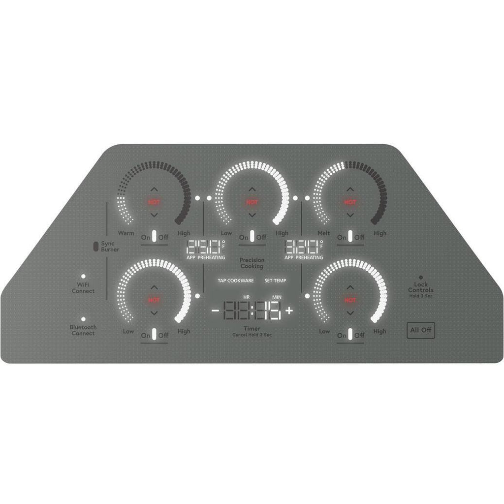This smart cooktop features Built-In WiFi so you can monitor your burners and view power levels, precision temperature, or on/off.
