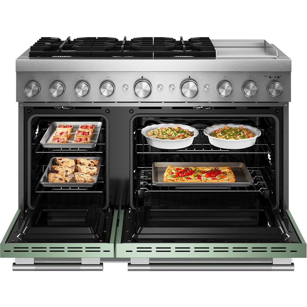 With a curated palette of exterior finishes and mixed metal hardware. Pick from serene Juniper, warm Black Ore and classic Stainless Steel finishes, all with matching handles and knobs. Personalize your hardware with optional handle and knob accessory kits in Brass, Bronze, Black Ore and Stainless Steel.