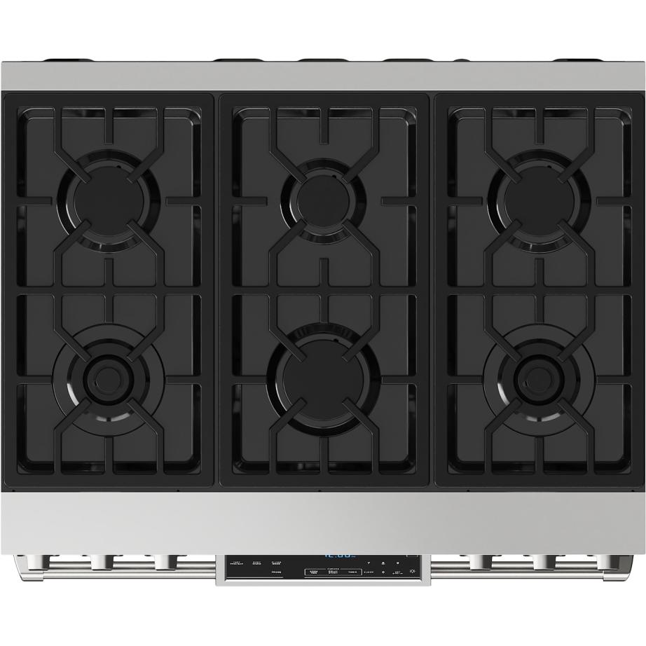 The continuous grate design allows easy movement of pots and pans across the cooktop.